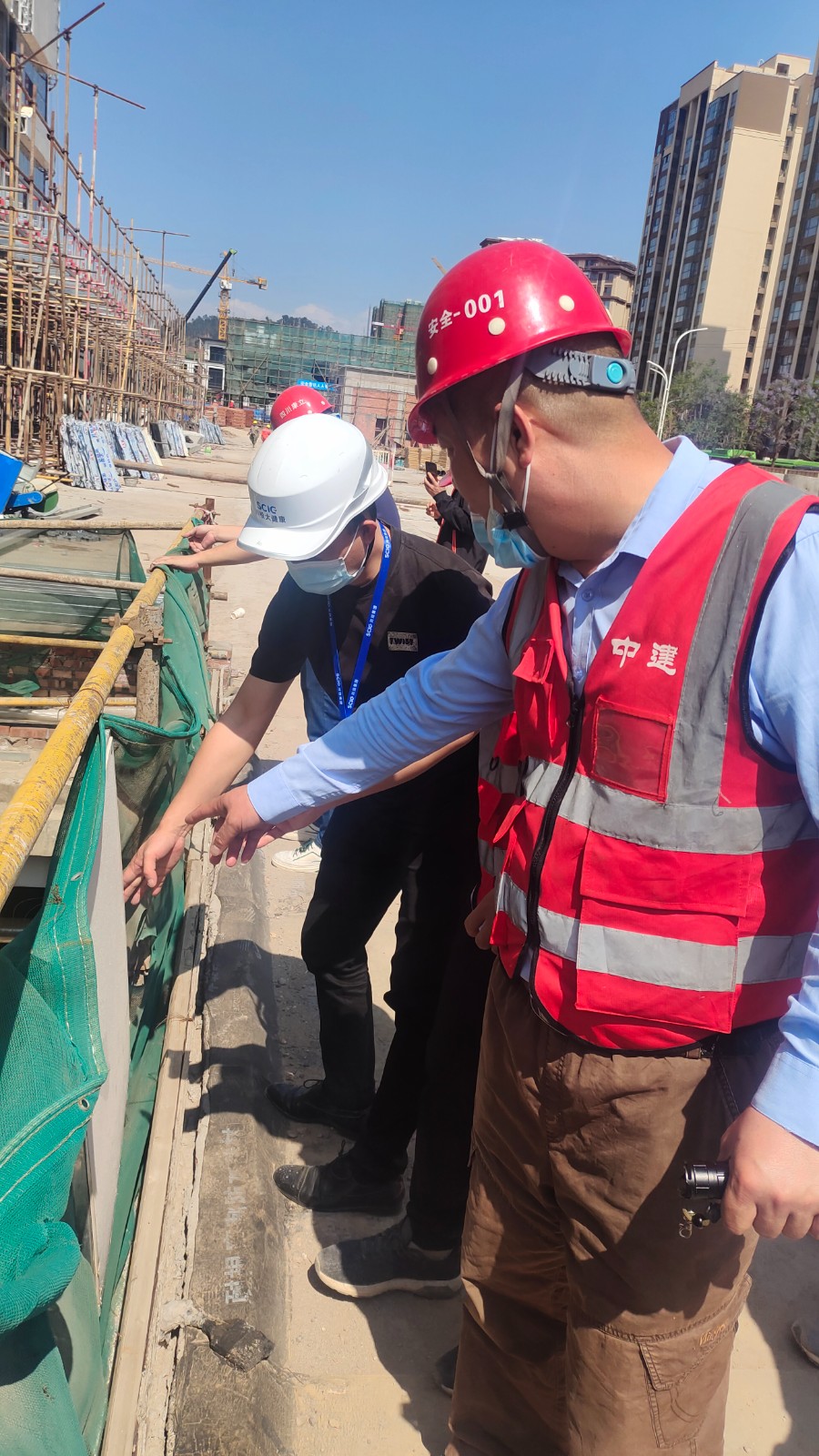 李剛帶隊聯(lián)合檢查了各區(qū)域疫情防控措施落實情況、臨時用電、腳手架施工、臨邊防護及吊籃作業(yè)等,對檢查中發(fā)現(xiàn)的臨邊防護不足等安全隱患要求立即限時整改。同時還巡查了兩個項目排水溝、地下室入口、后澆帶、設備房、雨水收集池等防汛重點。