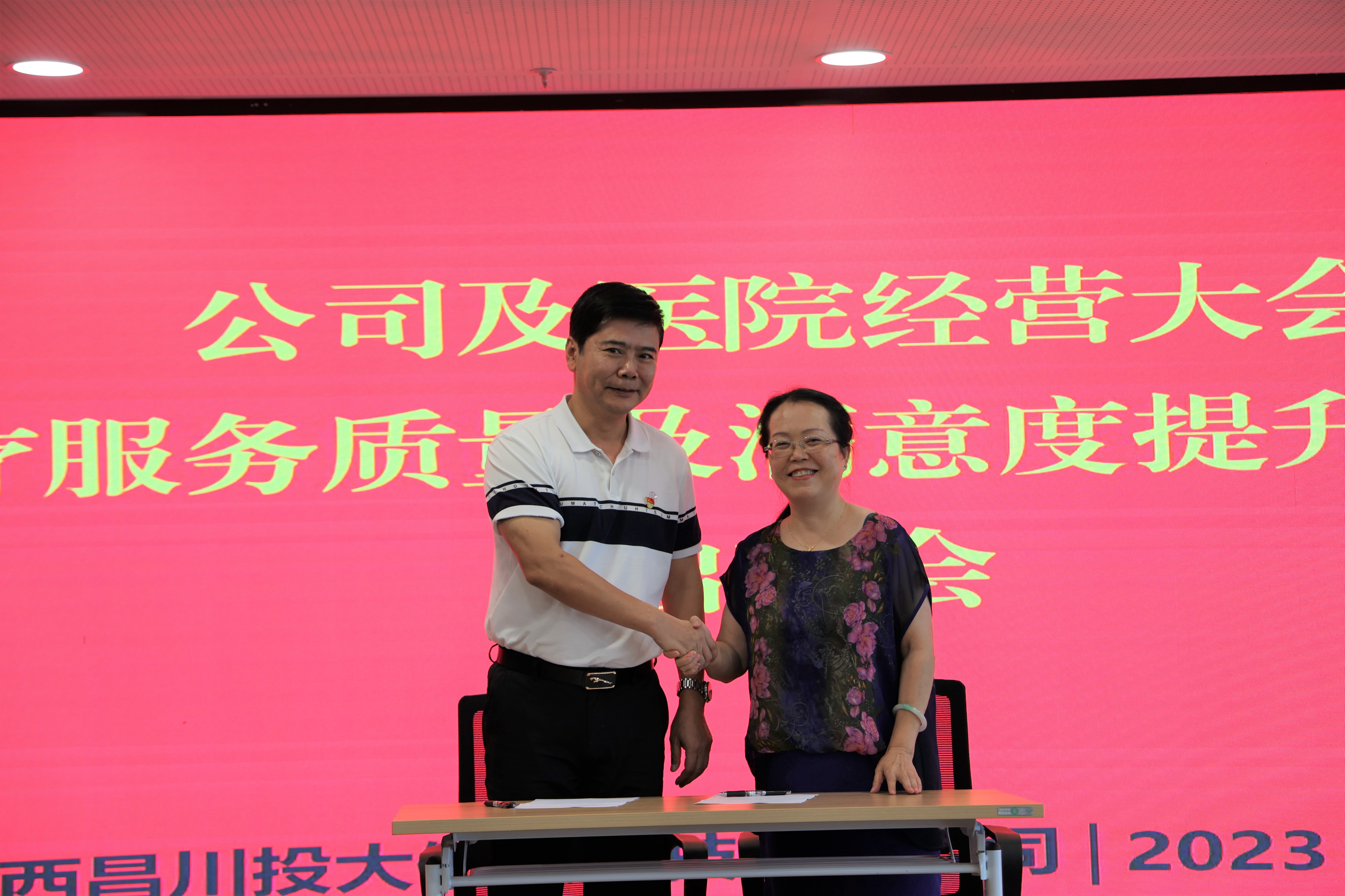 會上,黨委書記、董事長龔堅宣讀了公司黨委《關(guān)于公司及醫(yī)院領(lǐng)導(dǎo)班子成員職責(zé)分工調(diào)整的通知》,強調(diào)全體領(lǐng)導(dǎo)班子成員應(yīng)嚴(yán)格履行“一崗雙責(zé)”的相關(guān)工作職責(zé);經(jīng)營管理部通報了公司2023年1-7月經(jīng)營目標(biāo)和重點工作完成情況及全年目標(biāo)差距;金鴻院長與各分管副院長簽訂了《2023年經(jīng)營業(yè)績責(zé)任書》。