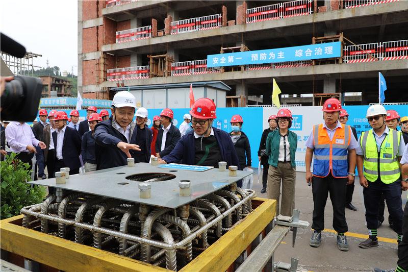 羅主任一行首先聽取了公司董事長魯洪斌對醫(yī)院項目的介紹,詳細了解醫(yī)院的建設情況、運營籌備情況、存在的困難及請求支持協(xié)調(diào)事項。隨后,觀摩團參觀了項目施工工藝展示區(qū)和安全管理展示區(qū)。